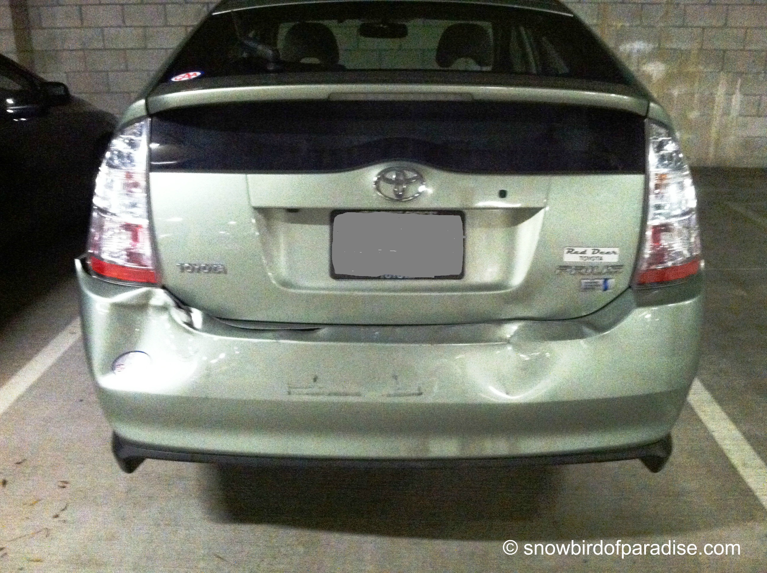 In the process of searching through my purse in the dark, I managed to drop things and feel foolish. The other driver was very apologetic about the accident and kindly picked up all the things I dropped. He didn’t ask me for my insurance information, but he did take a picture of the damage.  At that point, I remembered my cell phone and took a picture of the front of his car. We parted ways with me having obtained some of his information and he having none of mine.