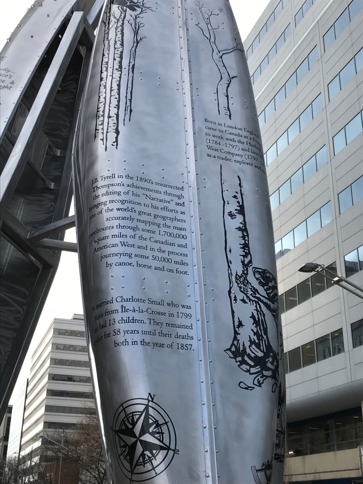 “Star Gazer – Koo-Koo-Sint” 2017 by Dawn Deterando and Brian McArthur. This is a tribute to David Thompson who mapped 1,700,000 square miles of Canada.