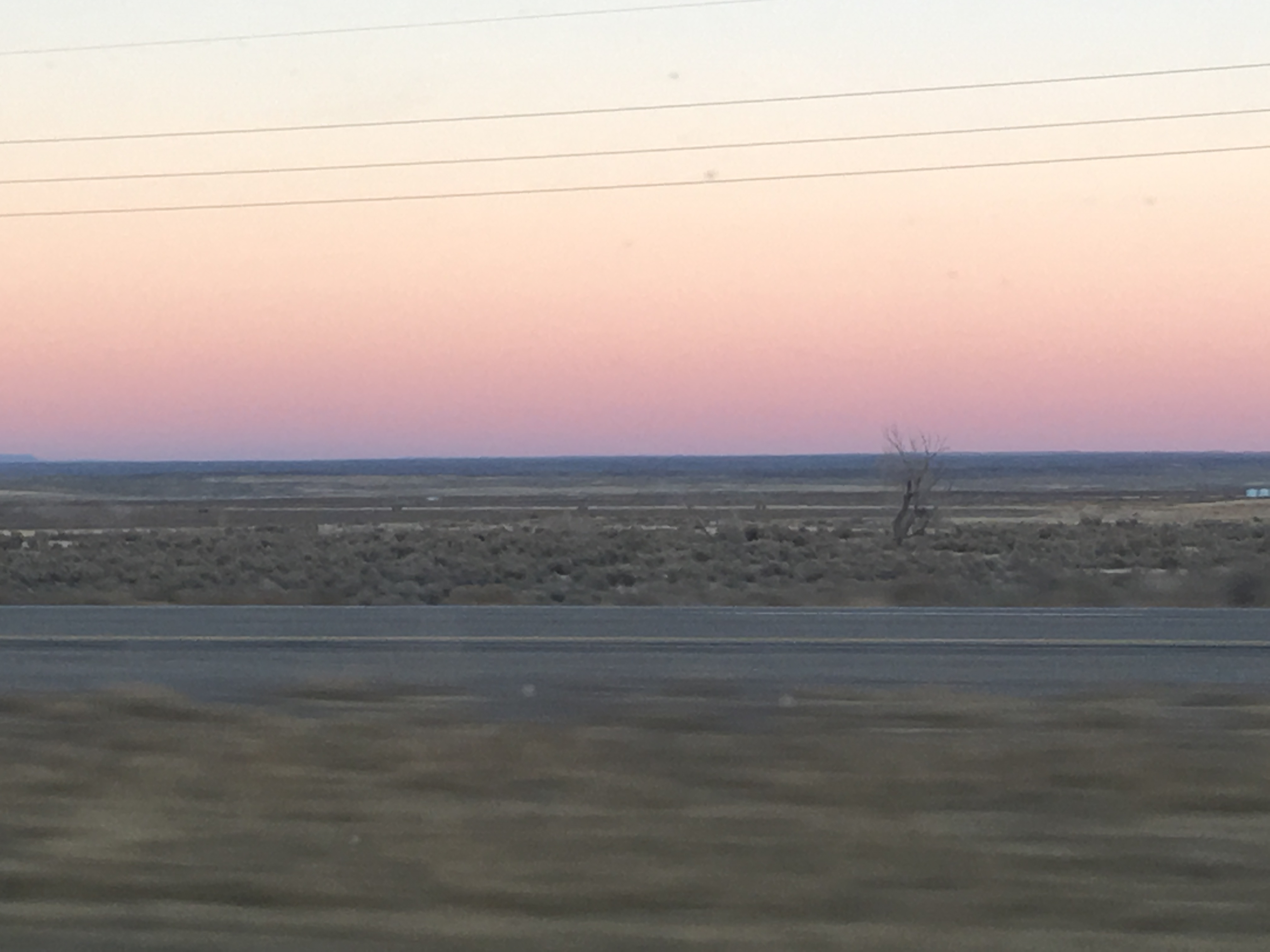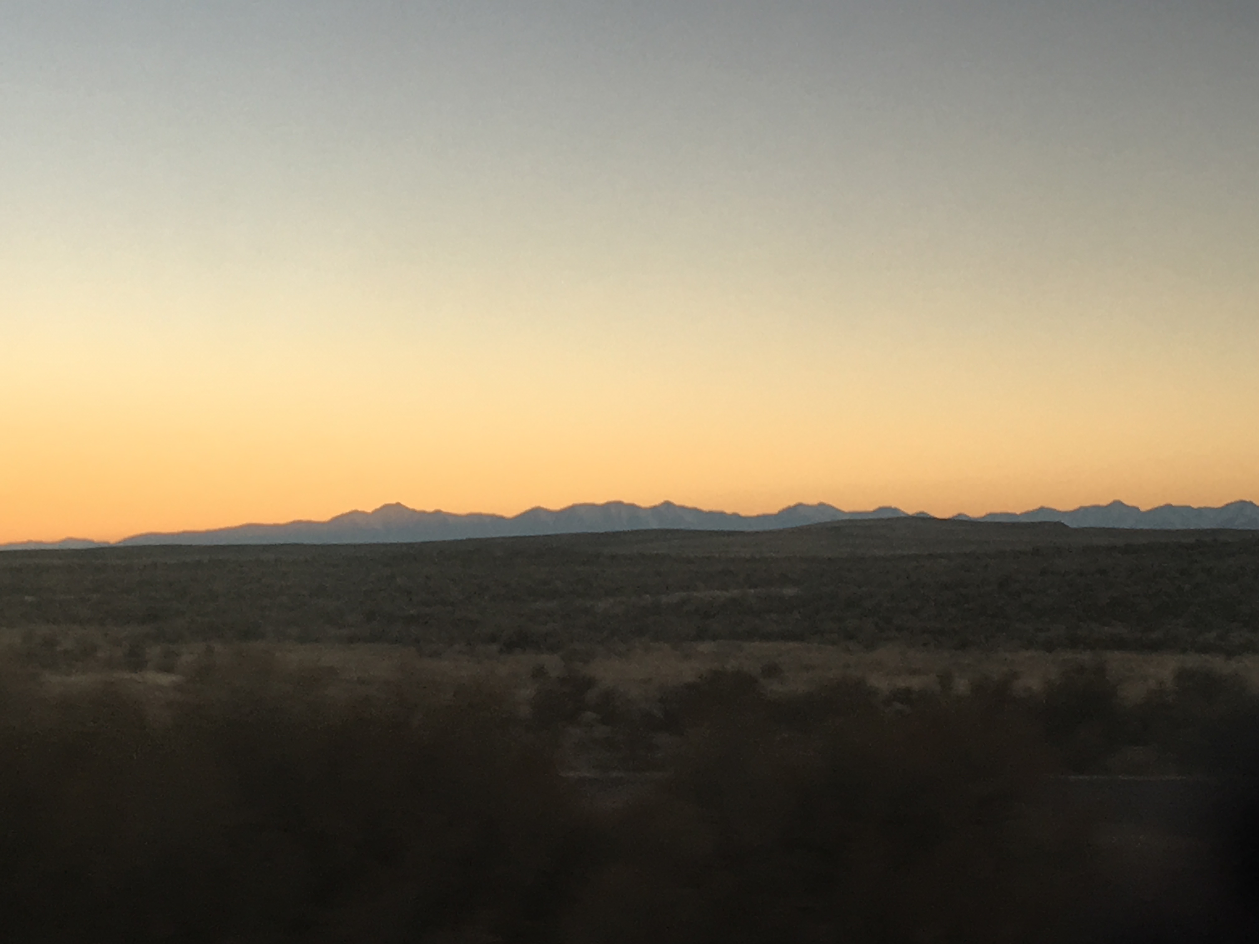 The landscape today was mostly mountains and foothills and the skies were bright blue. As the sun began to set, though, we saw some amazing colors and wondered if we were seeing the effects of smoke or dust.