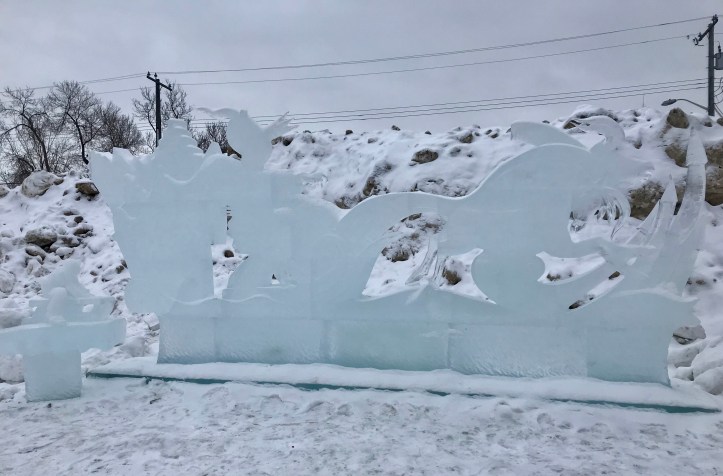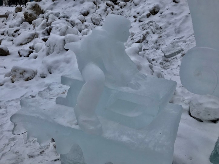 Earlier this month, there was a winter festival in our Edmonton neighborhood. It is called the Deep Freeze Festival and the theme this year was Winter Tales. When I arrived back in Edmonton on Monday, one thing that caught my eye on our journey home was an ice sculpture only a few blocks from our house that was created for the festival.