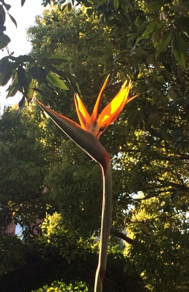 The Strelitzia (Bird of Paradise) that was the reason for my fall last year is now blooming again. We both are.