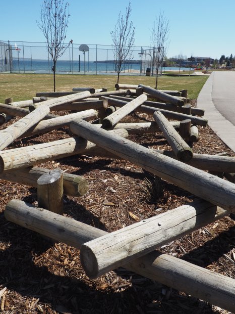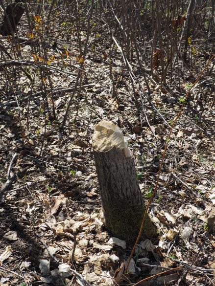 Tree stump with beaver teeth marks. Elk Island National Park.