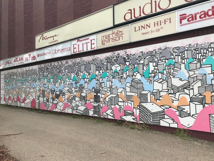 I always love seeing the variety of street art in Edmonton. The ingenuity and talent of the artists create varied and colourful delights. If you go to see these murals on 124th Street, you can also enjoy excellent food at the Tiramisu Bistro.