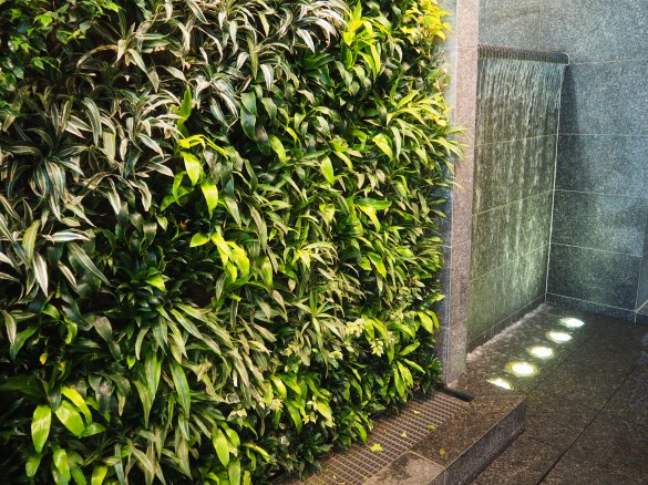 When we had finished with our food we went inside the adjacent visitors’ centre and looked at artworks for sale in the store, a display in the gallery, and a 4D film presentation in the theatre. We were also very impressed by the vertical garden and waterfall. It is amazing. As we were looking at it, a man who works in the building told us that every evening the garden is tended by workers using a specially designed vertical expansion lift with scissor mechanisms. I think he was as impressed with the lift as he was with the vertical garden!