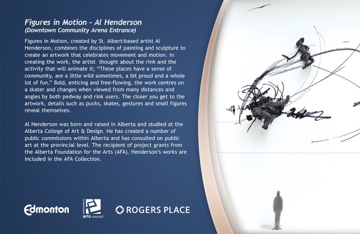 In addition to the NHL rink, there is a Community Rink at Rogers Place. At the entrance is a relief mural depicting hockey players fighting for the puck, and their movement is shown by the marks that their skate blades make in the ice.