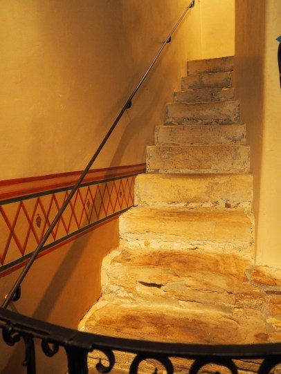 We wanted to go up to that choir loft but it isn’t allowed. At that bend in the stairs it gets very narrow and the ceiling is very low.