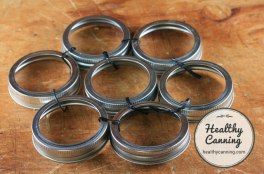 The canning rack turned out to be too big for my pot (despite my carefully pre-measuring before ordering it) so I had to improvise because it is necessary to put something at the bottom of the pot to stop the glass jars from clonking and breaking. I found a nifty suggestion online to join together several jar rings, and it worked really well as an alternative rack. I actually replaced the centre ring with a can of condensed soup because I needed that ring to close my sixth jar of marmalade.