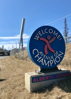 When it was created in 2001 it was part of the city’s effort to raise the profile of the area. It is on 118th Avenue which was originally known as Alberta Avenue. They changed the name to a number when the city came up with a grid system for the streets in 1914. Then, at the same time that the bat was installed in 2001, they gave the road the label “Avenue of Champions.”