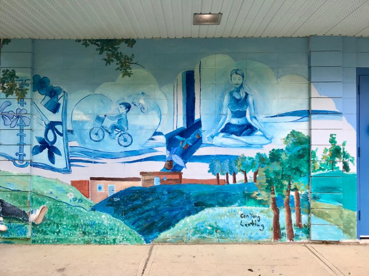 Empire Park is at 107 Street and 47 Avenue, and it includes the building for the Sahaja Meditations Centre which has a delightful mural by Cen Yang Lanting.