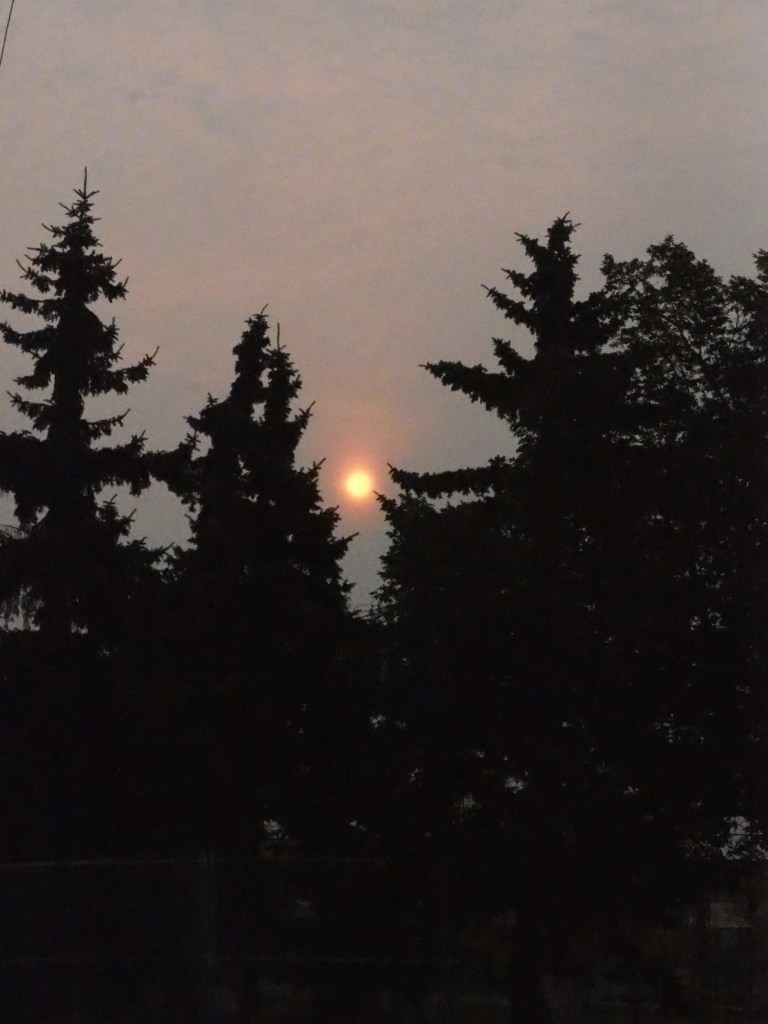 When I woke up this morning, the rising sun was orange. For the last few days we have been getting California’s wildfire smoke in Edmonton, Alberta, and it is expected to be worse this afternoon. It reminded me of the smoke we got from the Fort MacMurray fire in 2016, but this smoke has travelled a lot further.