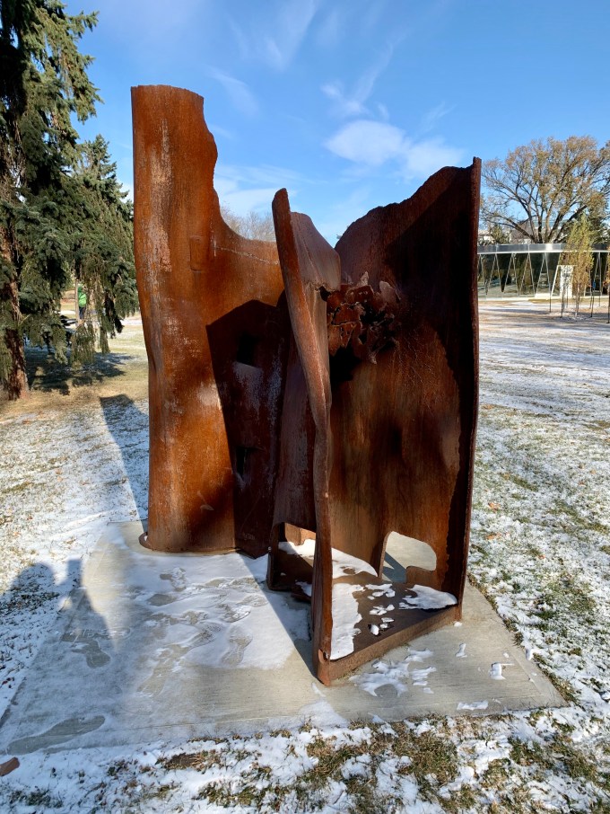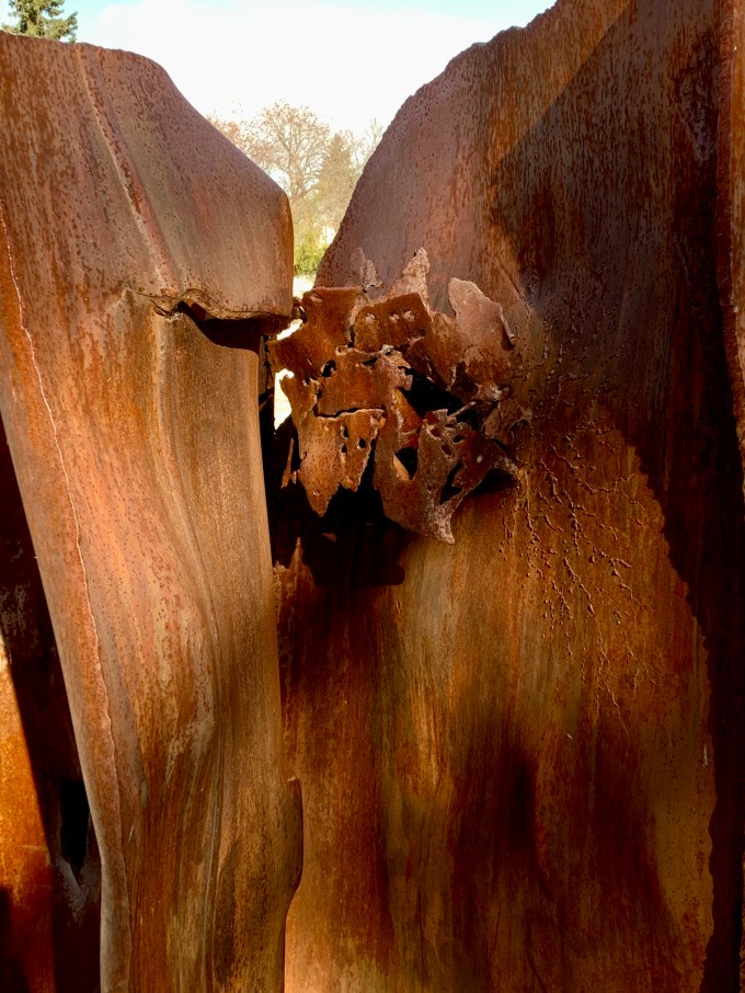 This description bears little (if any) resemblance to the sculpture, we couldn’t find the profile of a woman or the sphere anywhere, and I couldn’t wrap my head around the concept of “the walls of home, boundary, and body”. I thought perhaps there was something lost in translation. Also, having been housebound all week, I am definitely not longing for containment.