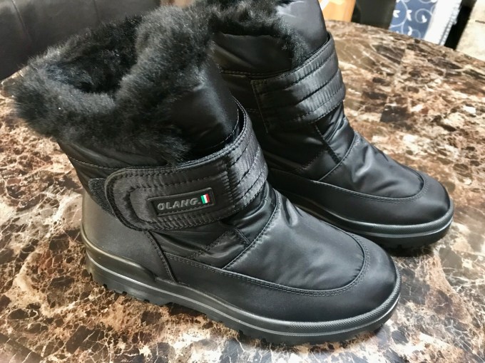 1. I bought Olang boots last year from Kunitz shoes.. There are quite a few other brands as well. They are best if you just stay outside, as they are slippery indoors of you don’t fold up the picks. So not good for shopping…if anyone does that these days.