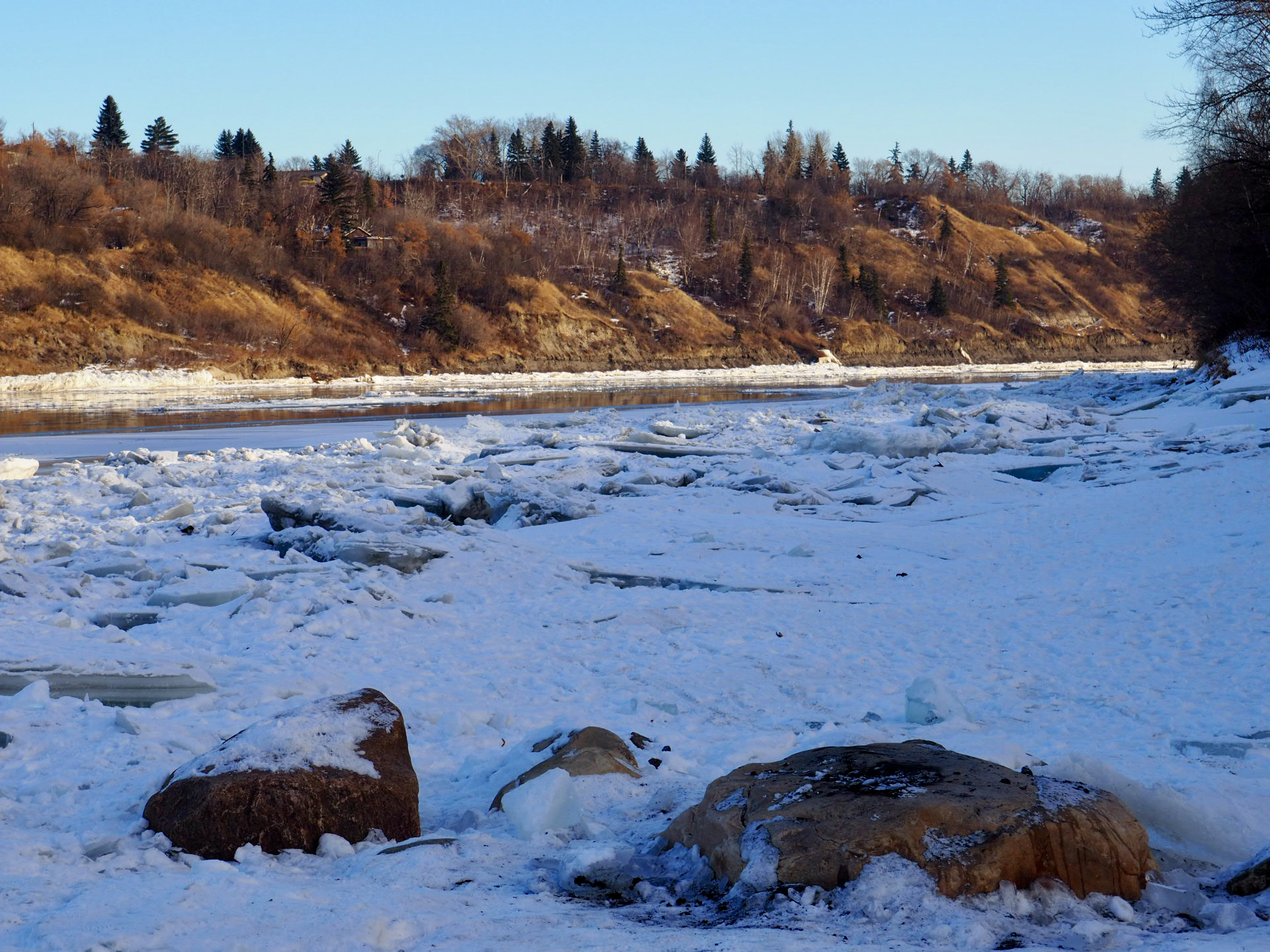 Yesterday my eldest son introduced me to a park I had not visited before, and it was a treat. Capilano Park provides walking trails, skiing trails, and an off-leash dog park. It also has great views of the city of Edmonton and the North Saskatchewan River. I was a little nervous that I might slip on the ice but the trail we walked on had been well groomed and sanded. In fact, my footing was more sure here that in my own residential neighbourhood. Here are some pictures to inspire you to visit.