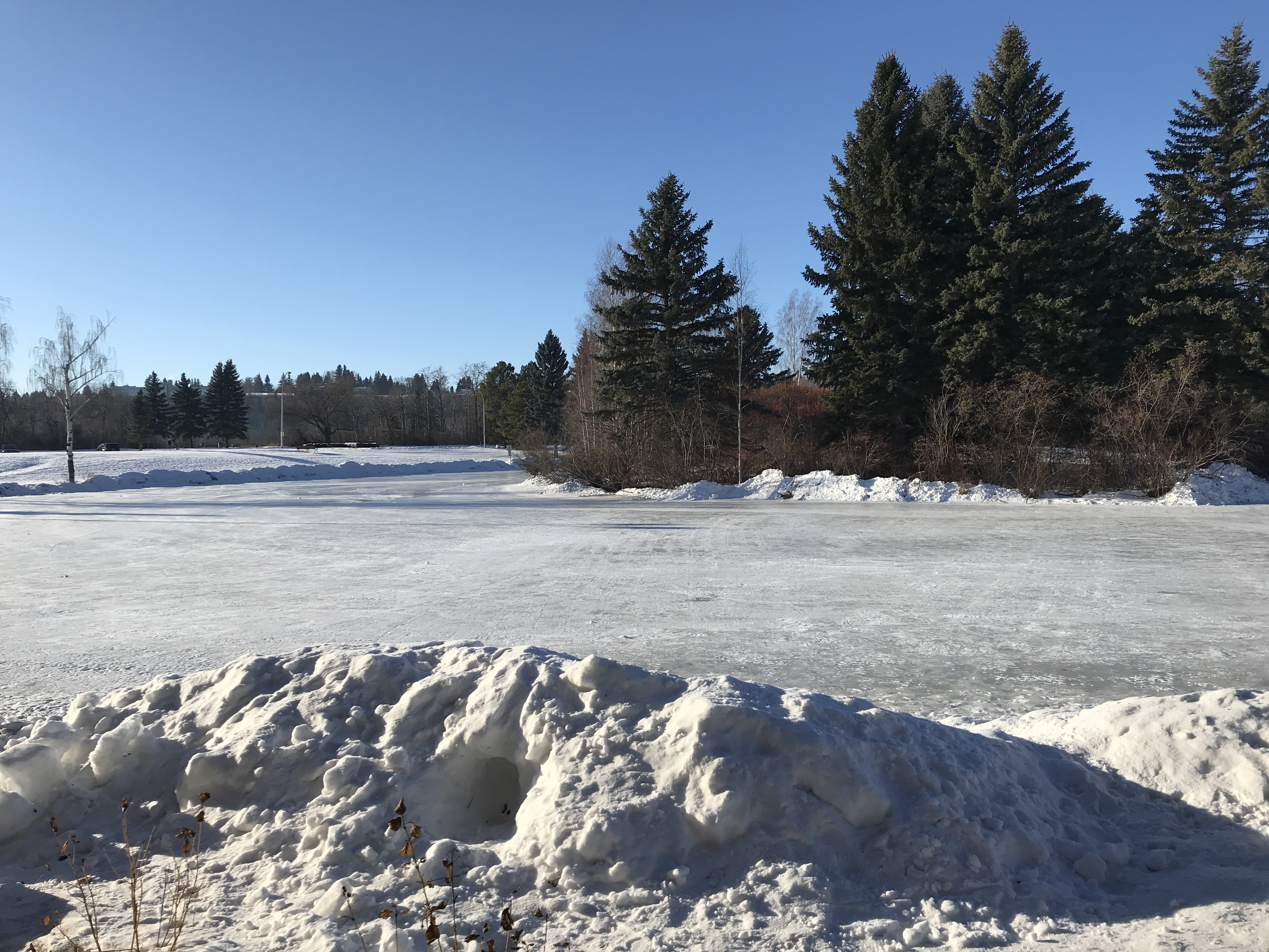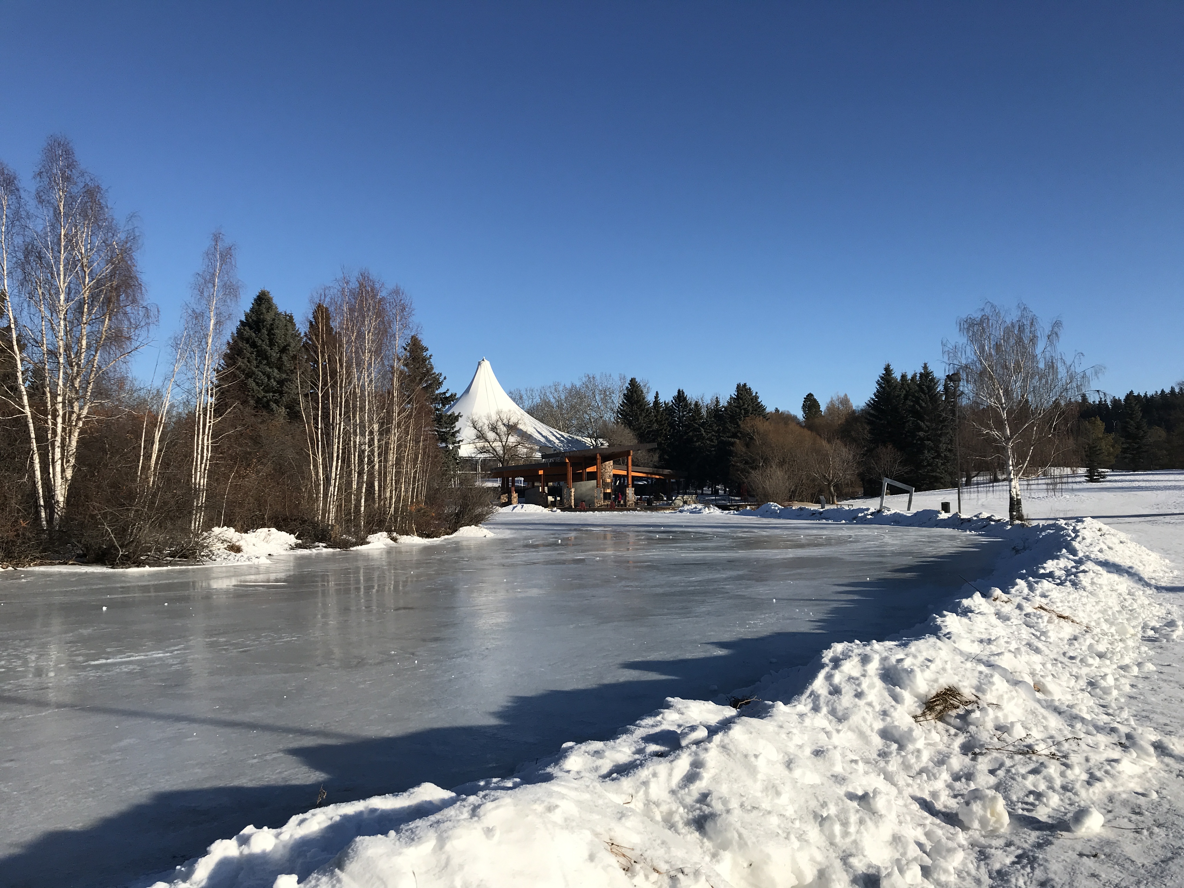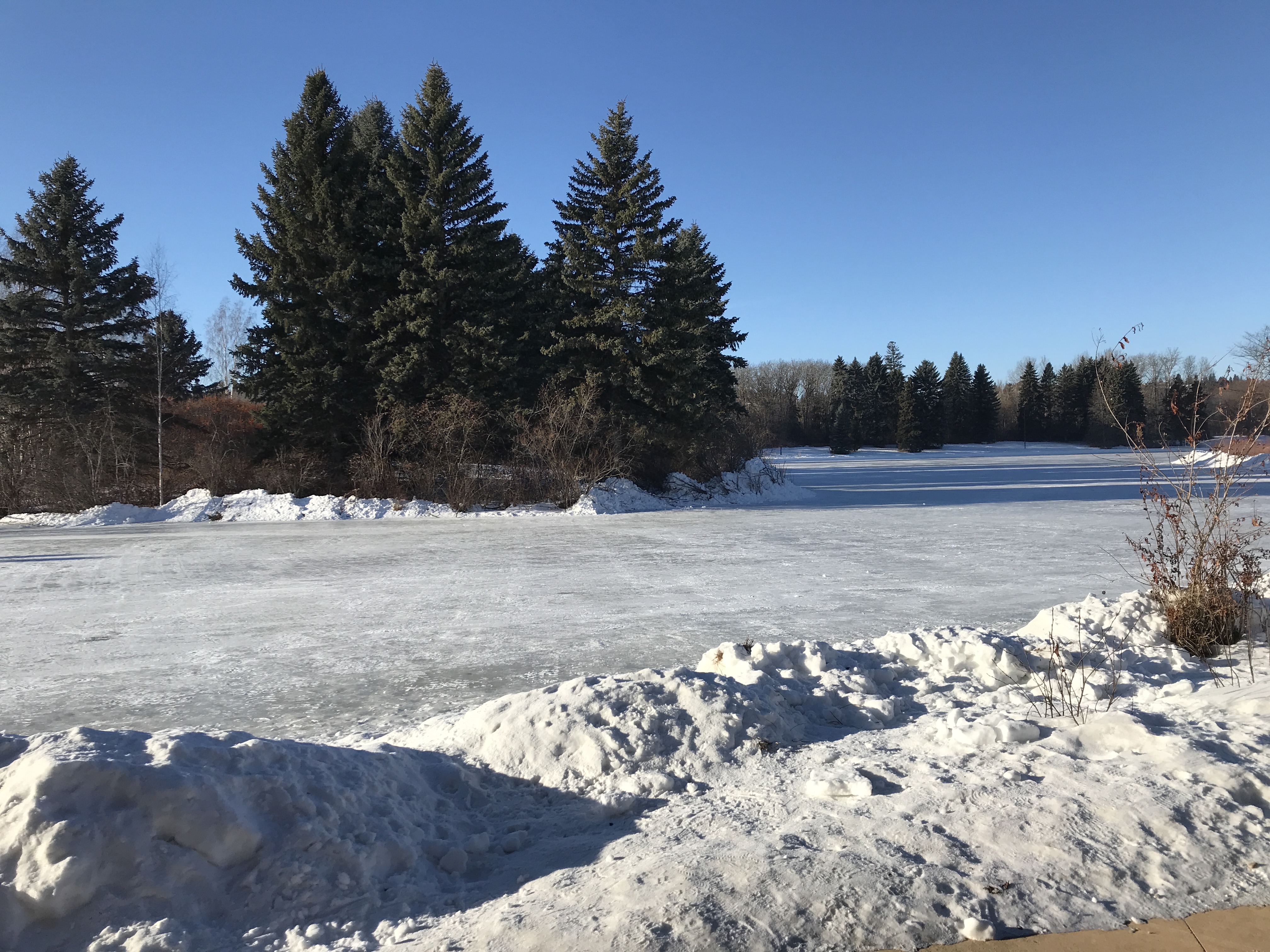 I also wonder why I haven’t visited this park before now. It is truly delightful. I enjoyed a walk around the lake and would have taken a second turn around it if it had been a little warmer. The lake covers 5 hectares in the 68 hectare park. There is an island in the middle with mature trees. When the ice is thick enough, people can skate on it but when I was there the signs indicated that it isn’t safe for skating right now.