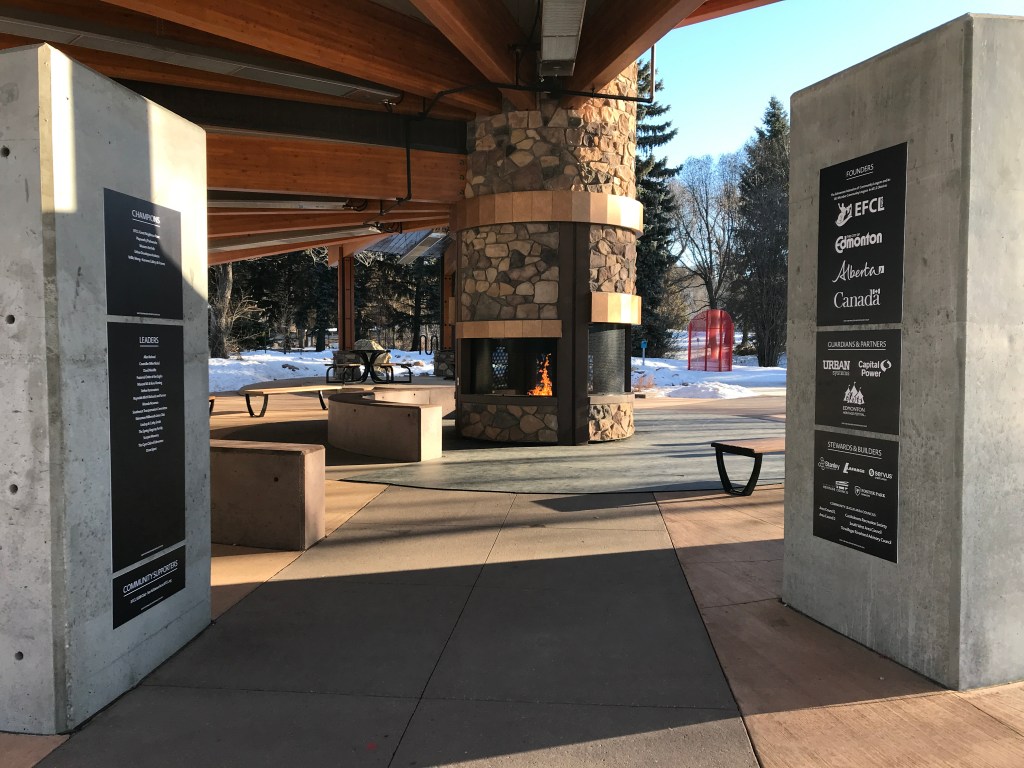 Beside the lake are a pavilion, a shelter building, some picnic sites, and a community league plaza with a delightful fireplace to warm returning hikers and skiers.