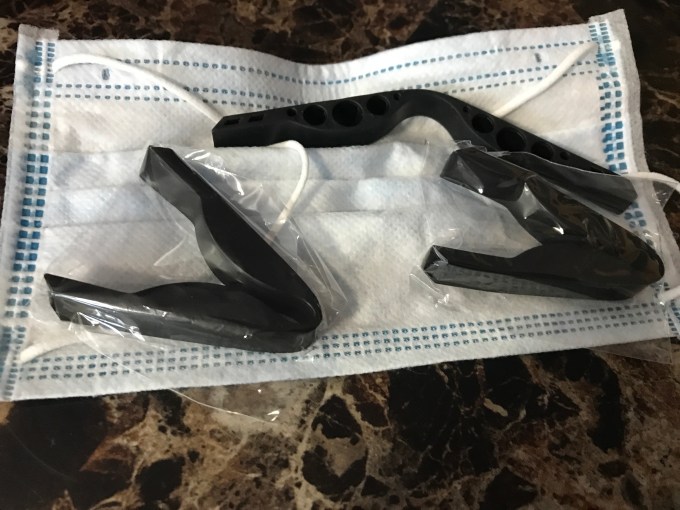 The disadvantage to these is that they get drawn in towards the face with intakes of breath. So, I bought these plastic frames to guard against that. They are tricky to attach, and don’t stay on long if you engage in conversation.