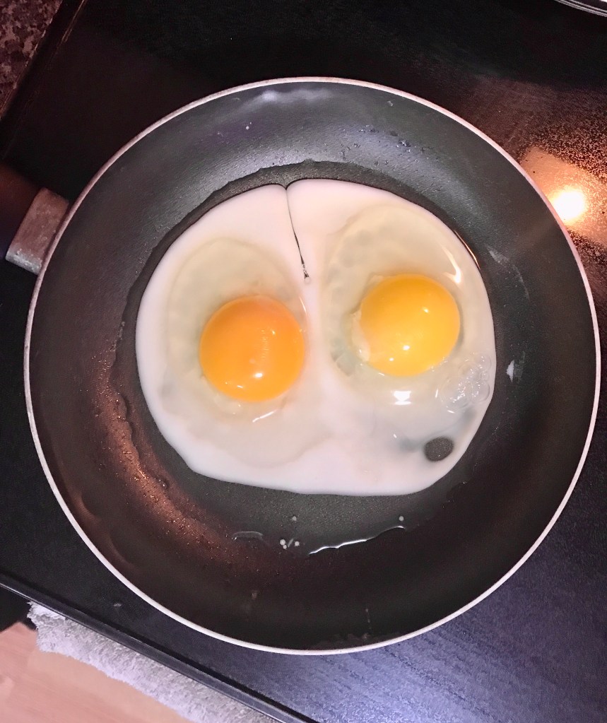 The other thing I noticed was that they were both exactly the same size. “What the heck!” I said to myself. I think I am being ripped off. They were the same brand name of egg from the same grocery store, so there ought to be a difference in size between the large and the extra-large, don’t you think? I know. Me too.