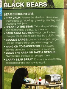 “ talk firmly to a bear if we should see one. Right. I always treat black bears like naughty children. Doesn’t everyone?”