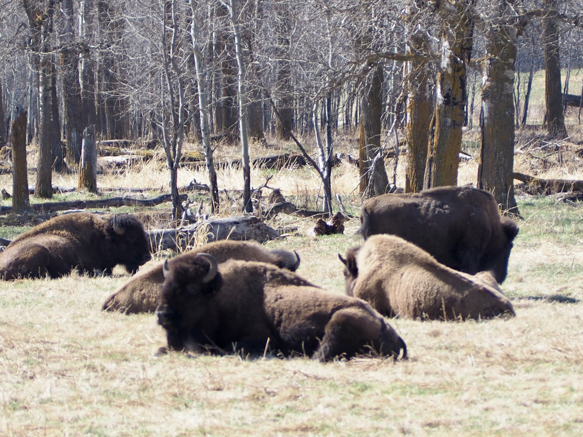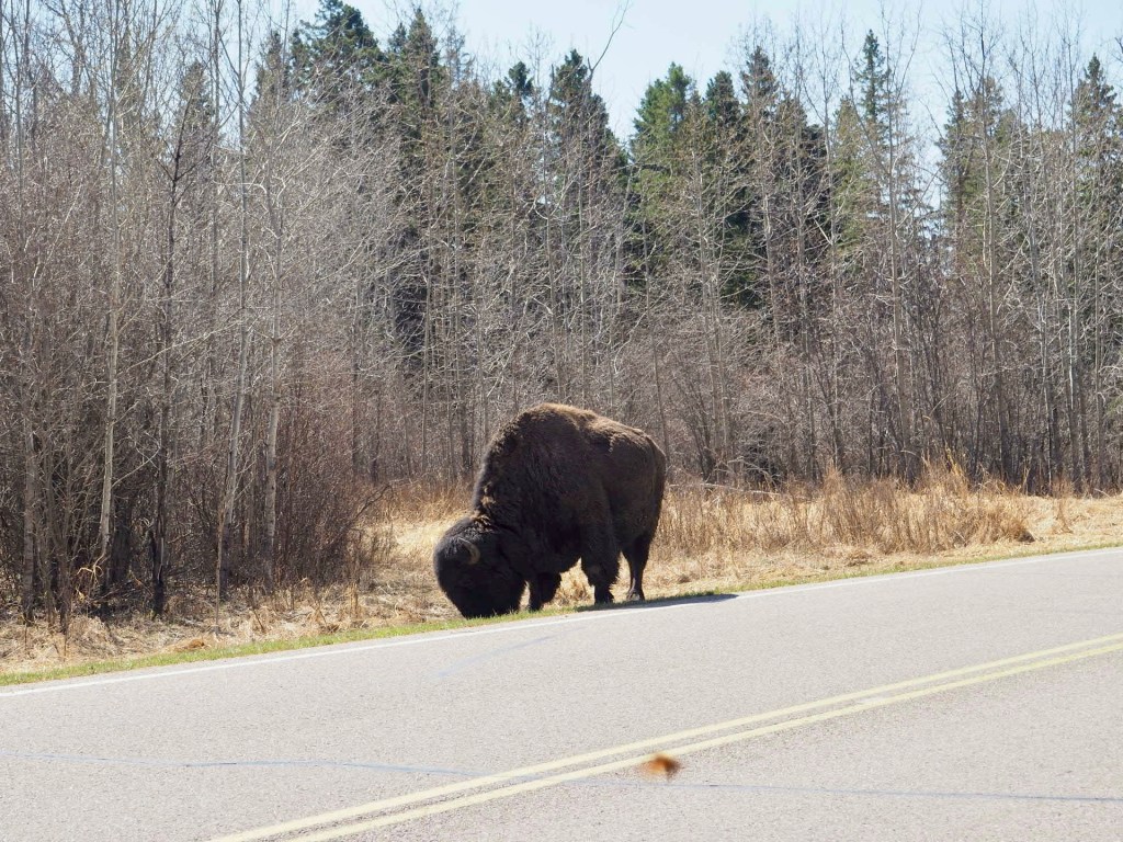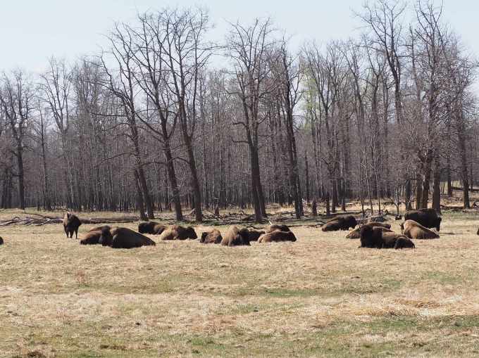 I am very fortunate to live only half an hour away from Elk Island National Park where there are about 400 plains bison and 300 wood bison. It is the only fully fenced national park in the country, and the fencing is necessary because the bison population is being actively managed. The fence is there to keep out predators and stop the bison from roaming too far.