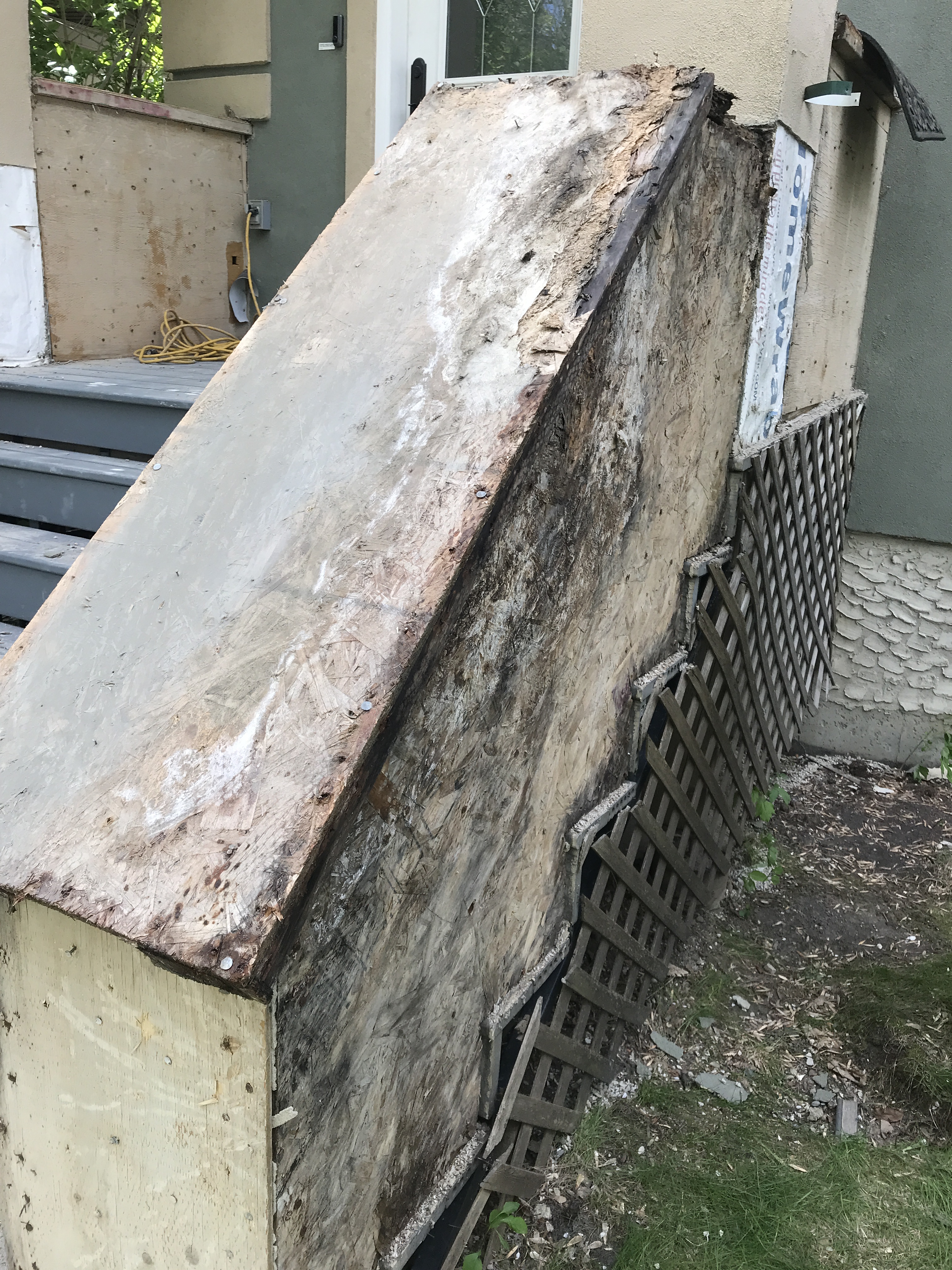 Today he started the work and found that the wood had rotted in some places and had to be replaced. When he returned from the hardware store he told me that one sheet of particleboard had cost $65. Last month it was $54. Last year it was $15.