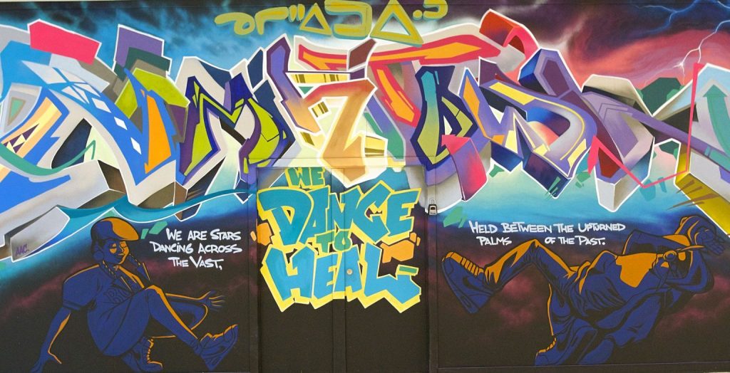 The artist has said: “It is a celebration of the positive work that these two artists do. They embody both the teachings of their ancestors and cultural generosity to share knowledge; as well as the innovation and universality that is Hip Hop culture.”