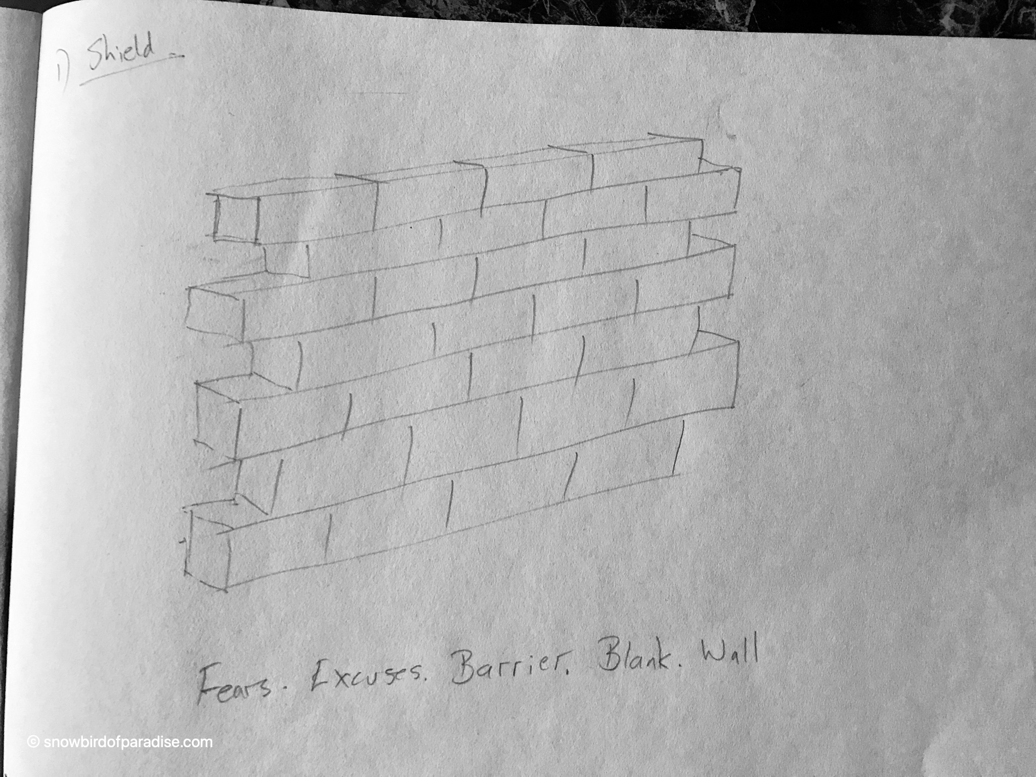 1. The shield that is protecting me from whatever stops me from creating. What does it look like? Shape? Colour? What is it protecting?