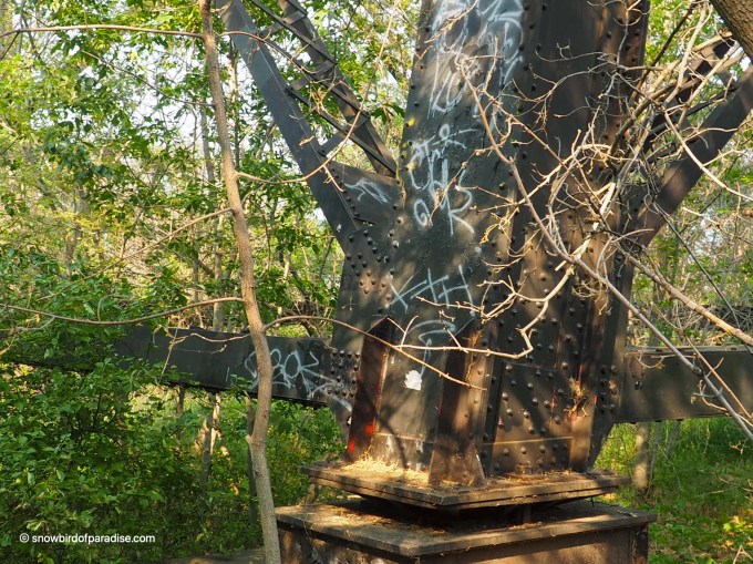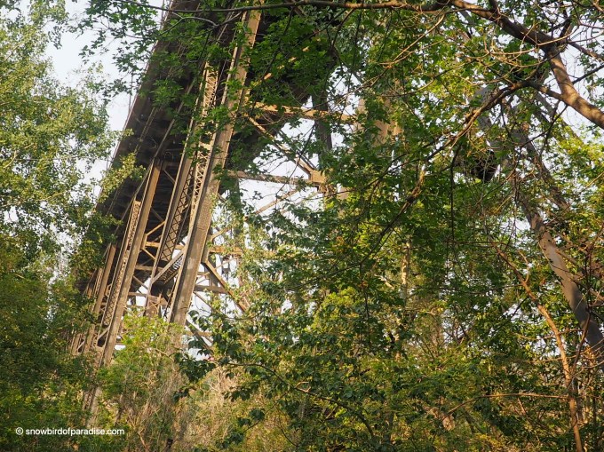 It is a nice ride over the bridge on the railway. My Mom said when there were streetcars they used the top level of the bridge. Some people would not ride across the top because they couldn’t see the tracks below them. They would get off at one side and walk across to catch the next streetcar.
