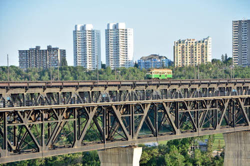 I had no idea! Now I need to go to Edmonton to take this tram! How cool is that? (The bridge you’ve captured reminds me very much of the Parry Sound trestle similar in length but not with the road component.)