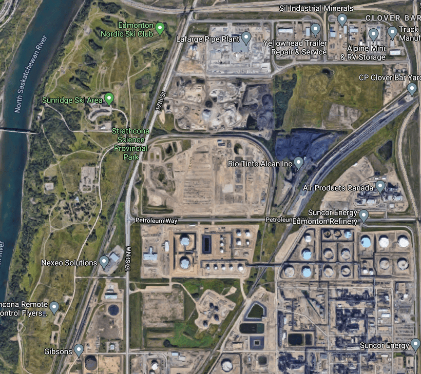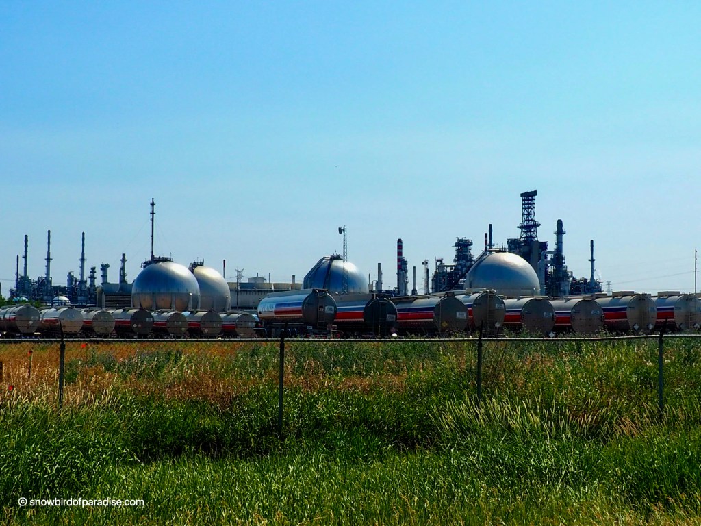 The area was made into a provincial park in order to protect it from encroachment by industrial development. To the east are multiple oil and gas refineries and terminals. As we drove away from the park we stopped to take photos of this one.