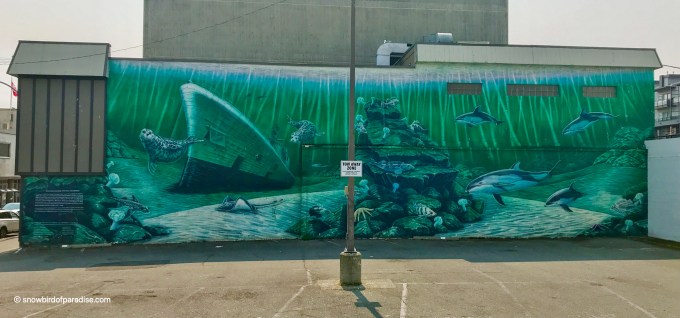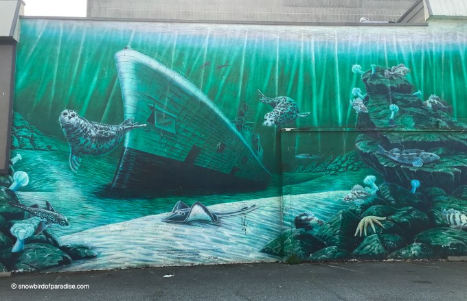 We were out on the water when this event took place. I was quite something to behold. Artificial reefs are biological bonanzas for sea critters and massively increases biodiversity. We also toured Saskatchewan before its sinking and it was a big undertaking to clean it of pollutants AND anything that could snag divers exploring the underwater hulk. I’ve not seen the mural; thanks for posting it! Beautiful.