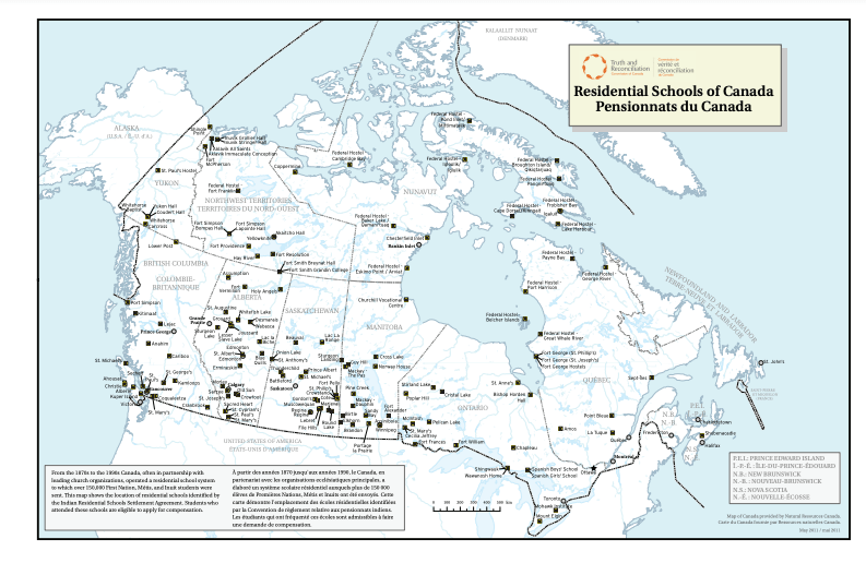 Update 30 September 2021: “To date, the Truth and Reconciliation Commission has identified more than 4,100 children who died while attending a residential school out of the more than 150,000 First Nations, Métis and Inuit children that were forced to attend.” (CBC)