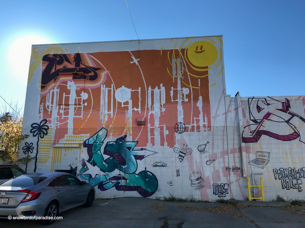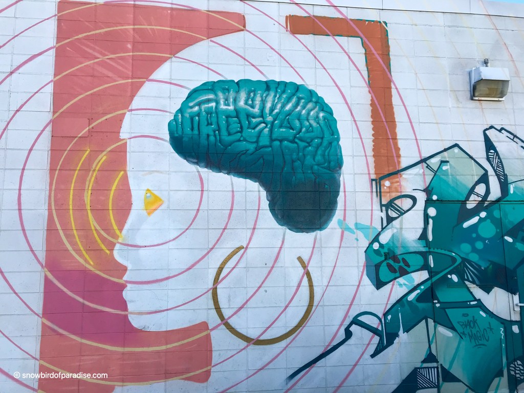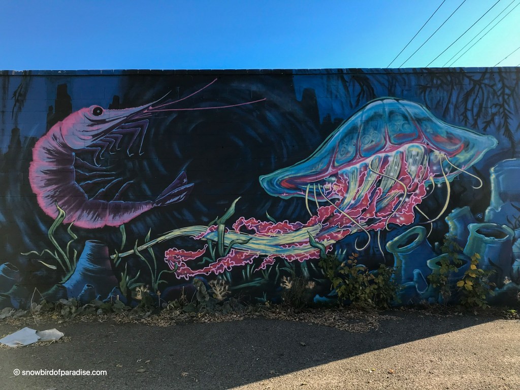 Just behind some shops on 82nd Avenue in Edmonton is an alley with some interesting murals. They are from several different artists and show a variety of styles, but they have one thing in common; courageous flair. I am always impressed by the confidence it takes to create artwork on such a massive scale, and I wonder about the processes the artists go through in planning and executing large murals.