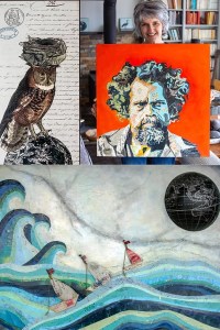 Their homes and studios were found in obscure locations, tucked away at the ends of narrow gravel driveways. One was a purpose-built ceramic studio above a workshop with a huge kiln. One was a showroom for glass sculptures and jewellery in a building set aside from the house. Another was a professional workshop for creating furniture from ancient woods. The metal sculptor had a huge building to house both the welded creations and some of his collection of very old trucks. The collage artist had a well-organized collection of tiny objects and old maps in her home studio with a fabulous view of the bay. They were all very different in their work and in their lifestyles, but they were all very friendly and welcoming, and happy to talk about their work.