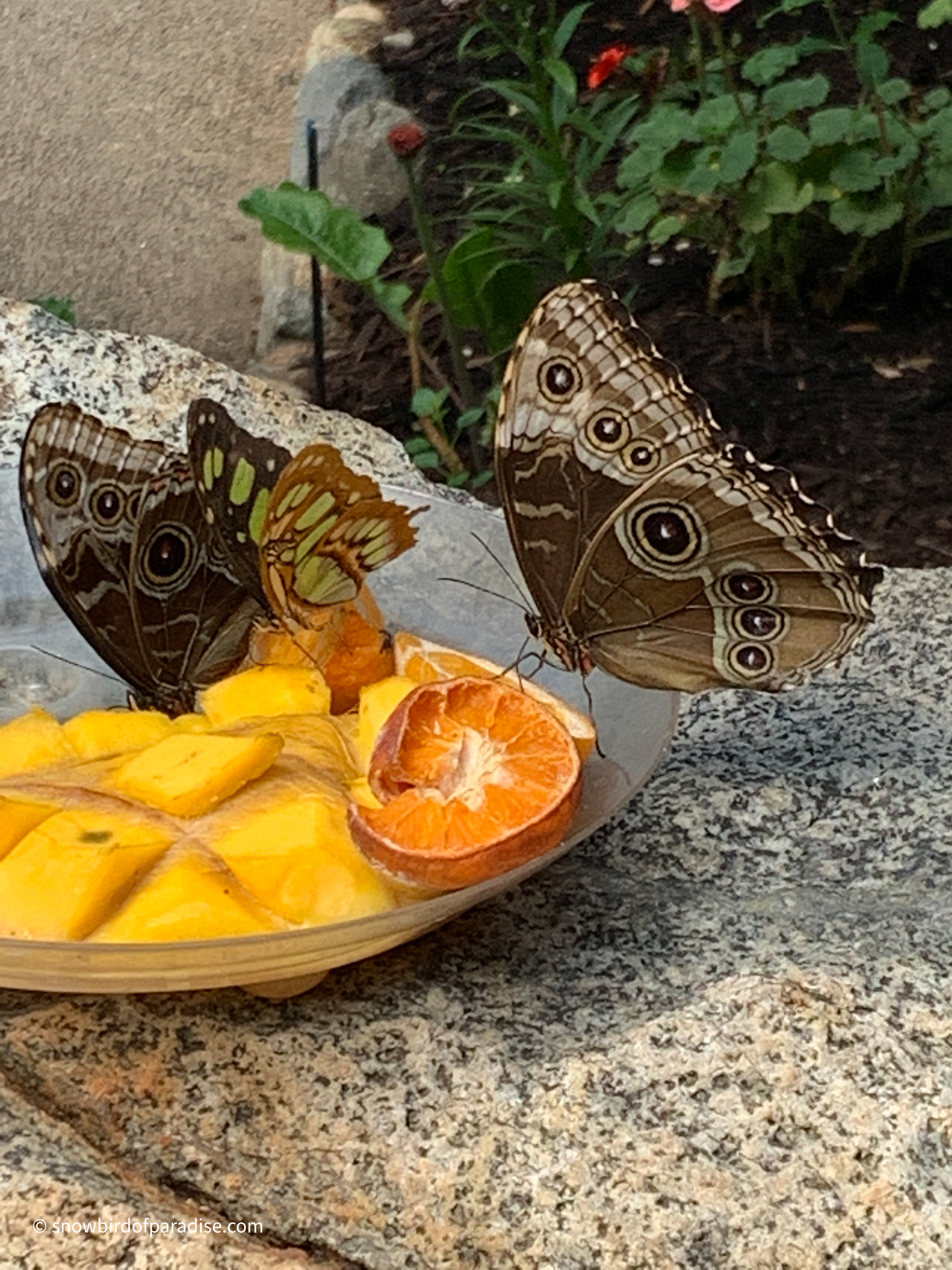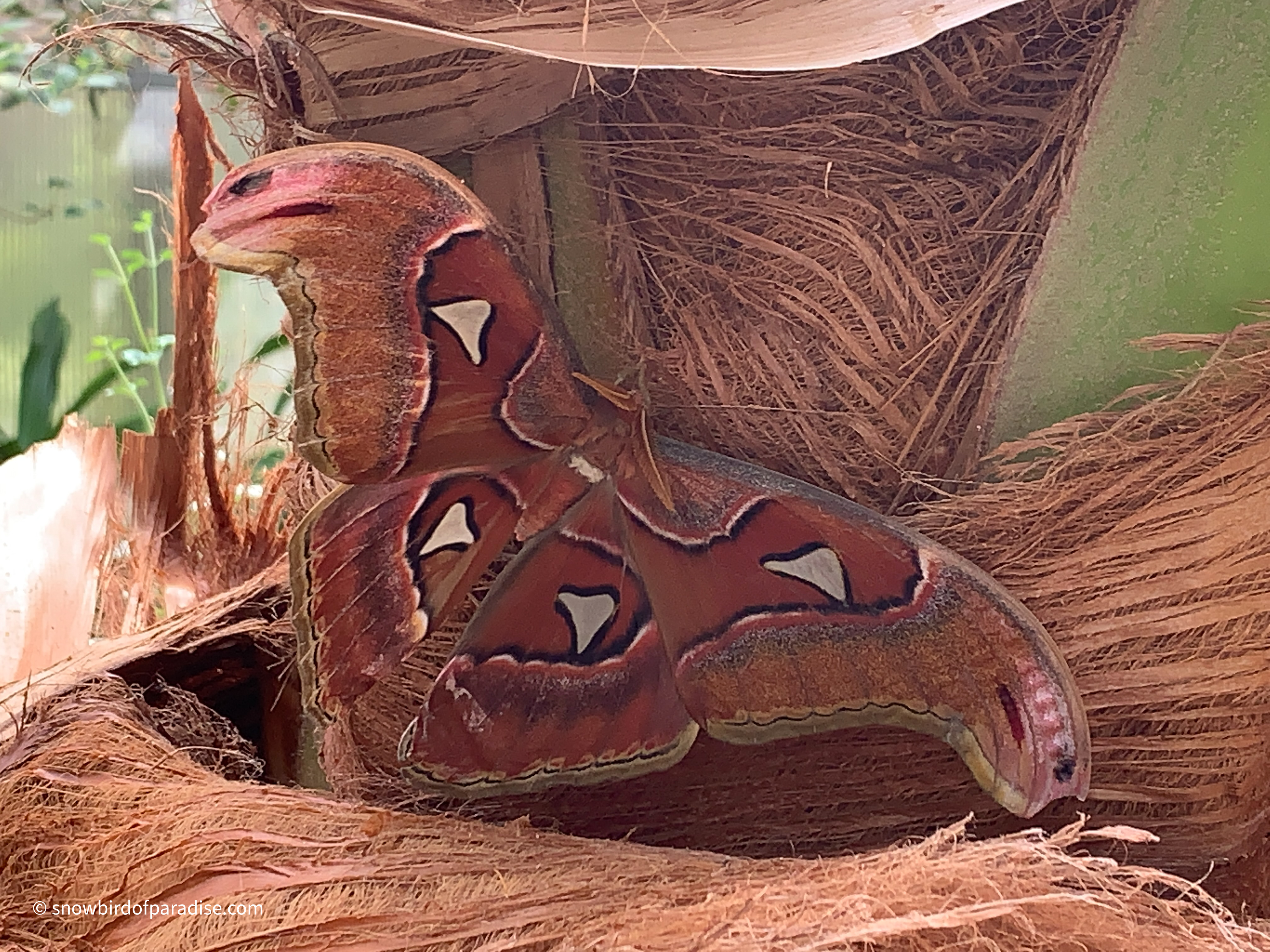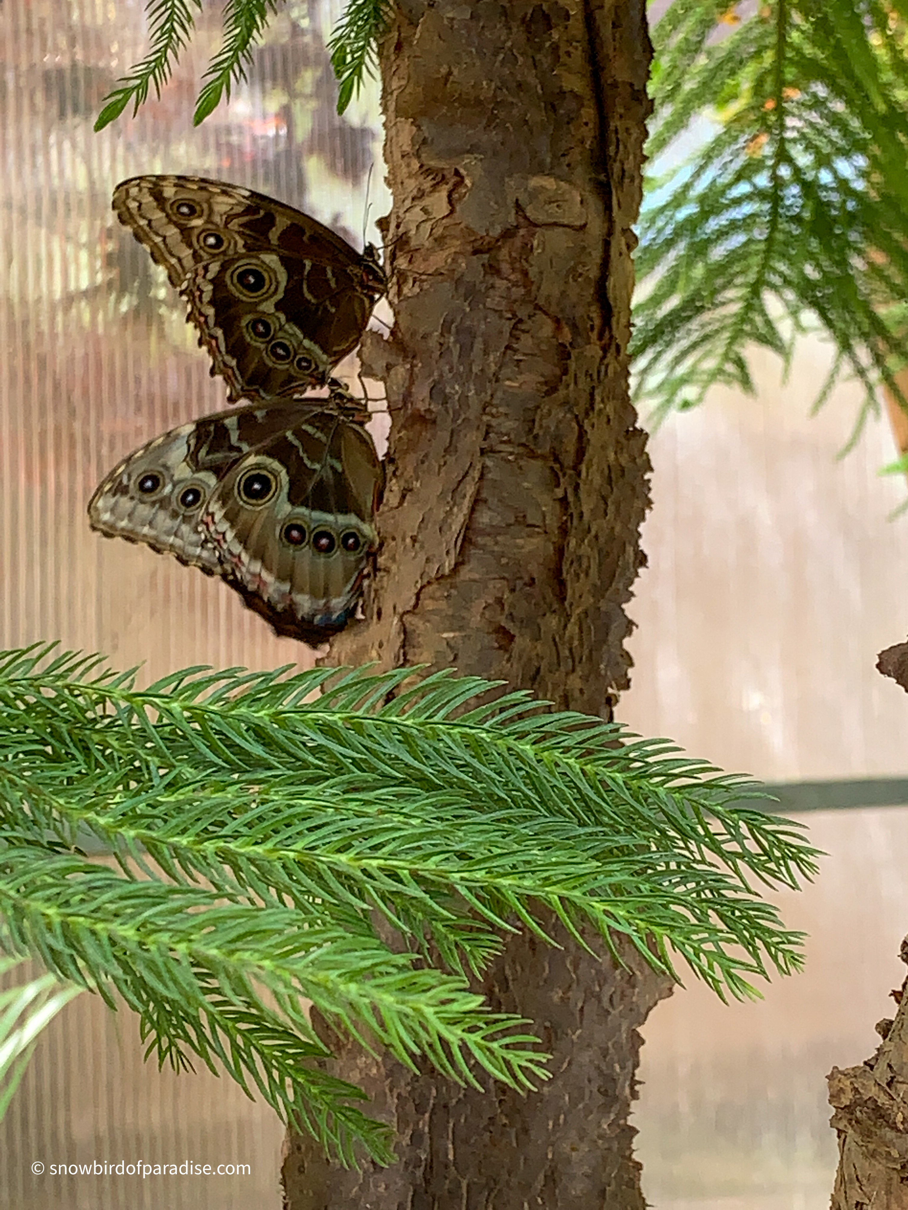 When I was there, the beautiful Blue Morpho butterflies were mating. A member of staff told me I was lucky because “This is the Morphos time.” The luminous blue on the upper sides of their wings is only visible when they are flying. When they stop to mate or to feed, they show only the brown colours of the under sides so that they blend in with their surroundings.
