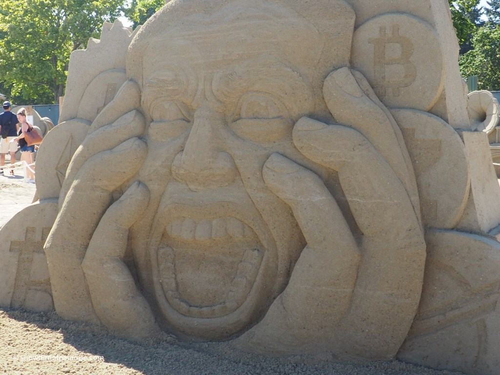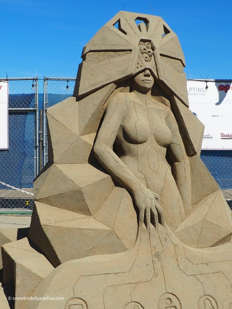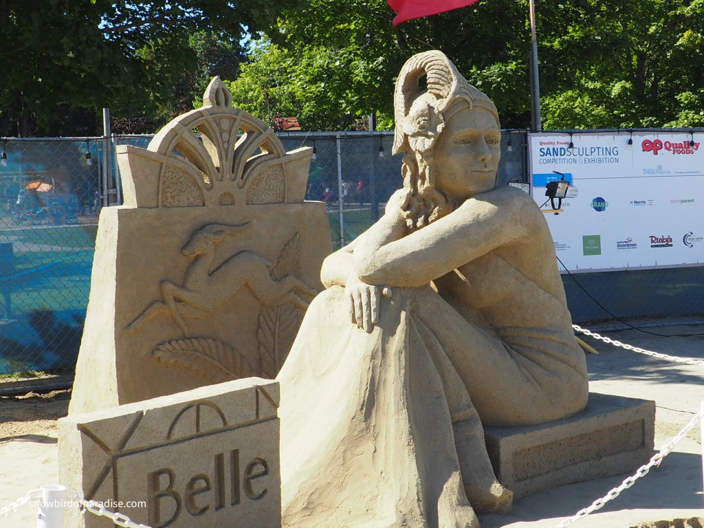 The theme for this year’s Parksville Sand Sculpture competition is The Roaring Twenties (or Twentys perhaps), and each visitor is given a token with which to make their selection for the People’s Choice Award. All the sculptures are well designed and well-executed so it is a hard choice.
