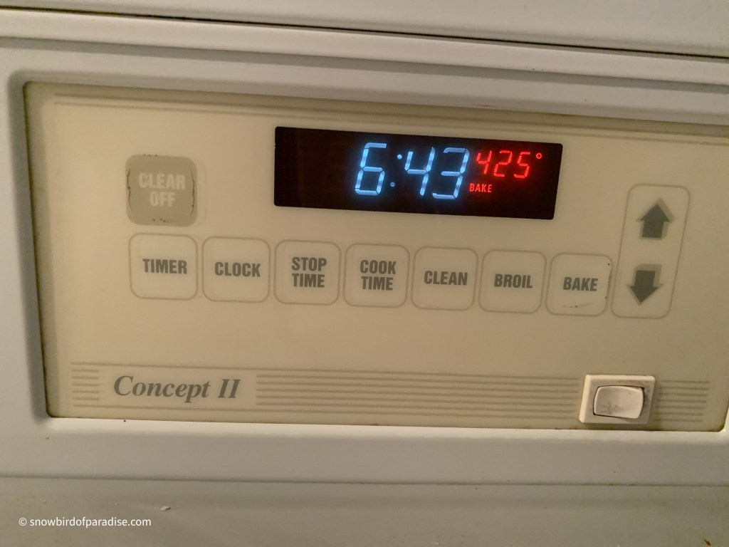 So, then I wandered around the living room and kitchen to try to track down the noise. Ultimately, I saw it. The oven was still showing, in bright red electronic numbers, 425. Oh no! My heart sank. After I had heated up my small, one-person meal last night, I had failed to turn off the oven! Calamity.