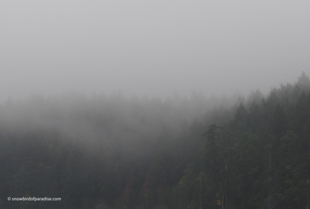 Yesterday afternoon, after the heavy rainfall and before the strong winds came through, there was mist.