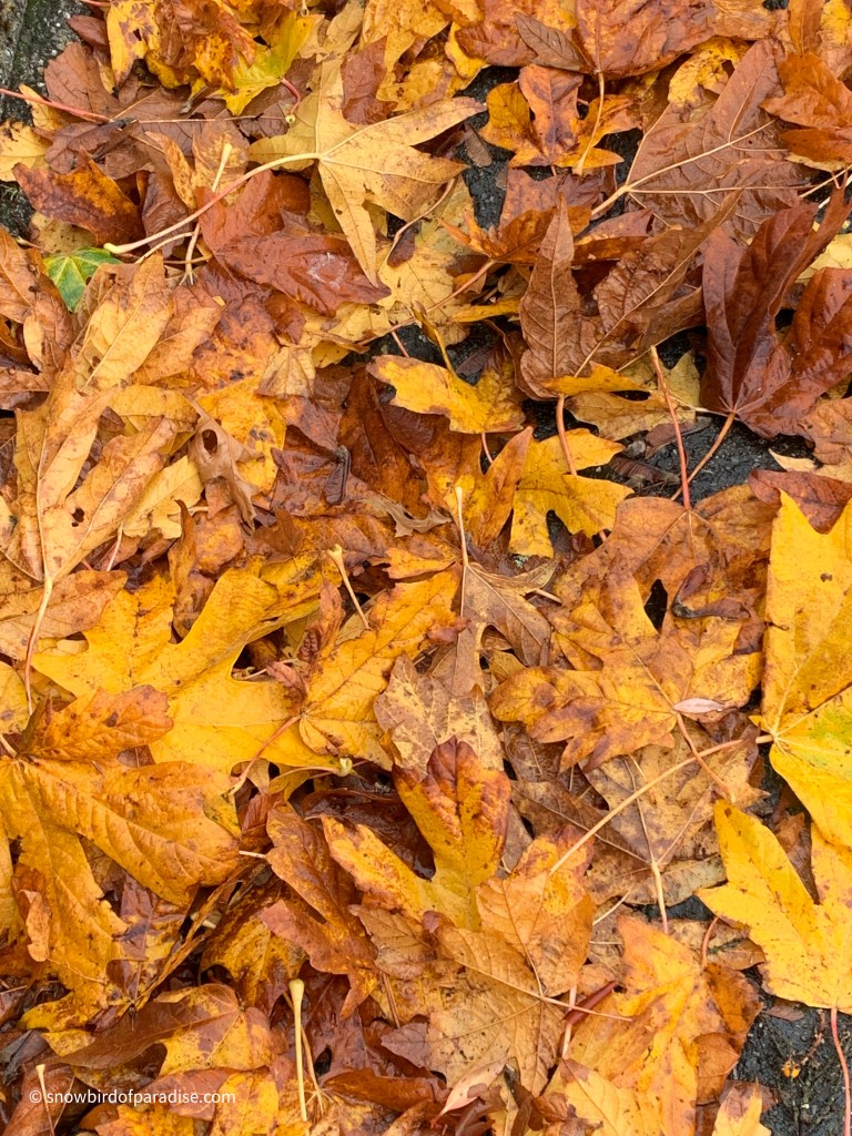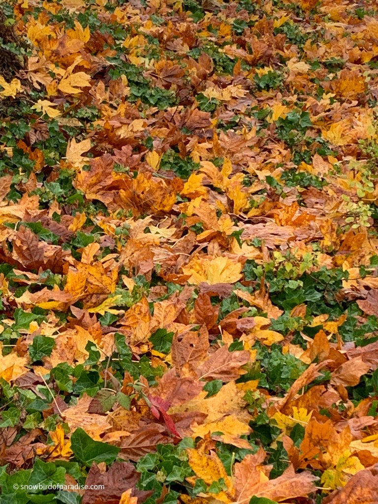 The weather forecast is for snow tonight, so before the leaves are all blown away or covered up, here are today’s colours.