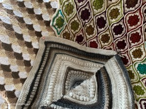 Today I donated a few bags of items to the thrift store and among them was the small green blanket. I considered including the green cardigan, but I didn’t. I took it out of the closet, held it up to look at it, laid it on the bed, wondered what to do about it, and then I put it back. It didn’t go to the thrift store. I was half-afraid it would meet its grey cousin and they would swap notes on my ineptitude, so the green cardigan awaits future decision-making.