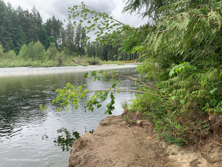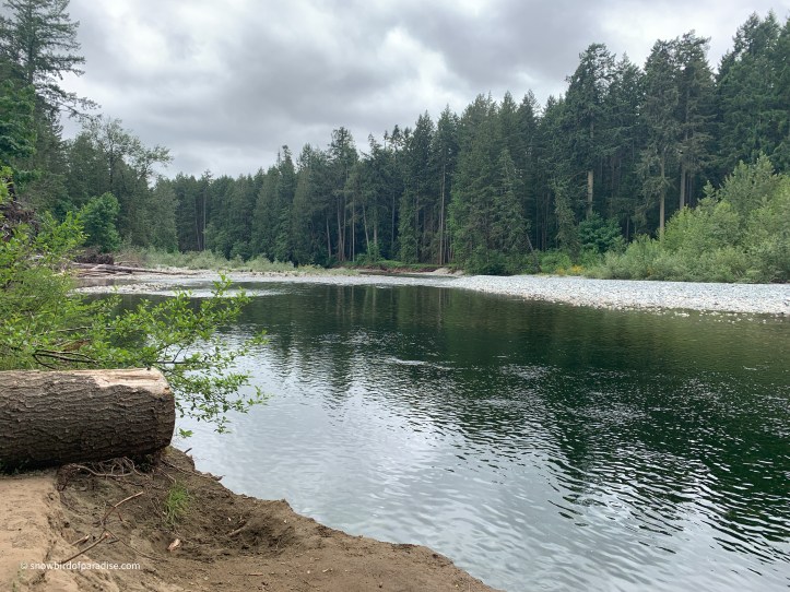 Not far from Nanaimo Airport is a lovely little park with a delightfully clear river. The water is shallow and you can clearly see the rocks at the bottom. The park is home to both coniferous and deciduous trees as well as berry and Alberta Wild Rose bushes.