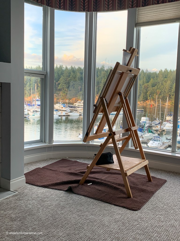Before I moved to Nanaimo, I bought a large used wooden easel with the intent to set it somewhere on the balcony or by a window to create huge masterpieces on canvas. However, it didn’t take long for me to remember that painting is messy and probably would not be well-received by my landlords who had just installed new carpet. Also, masterpieces are definitely a few years in my future.