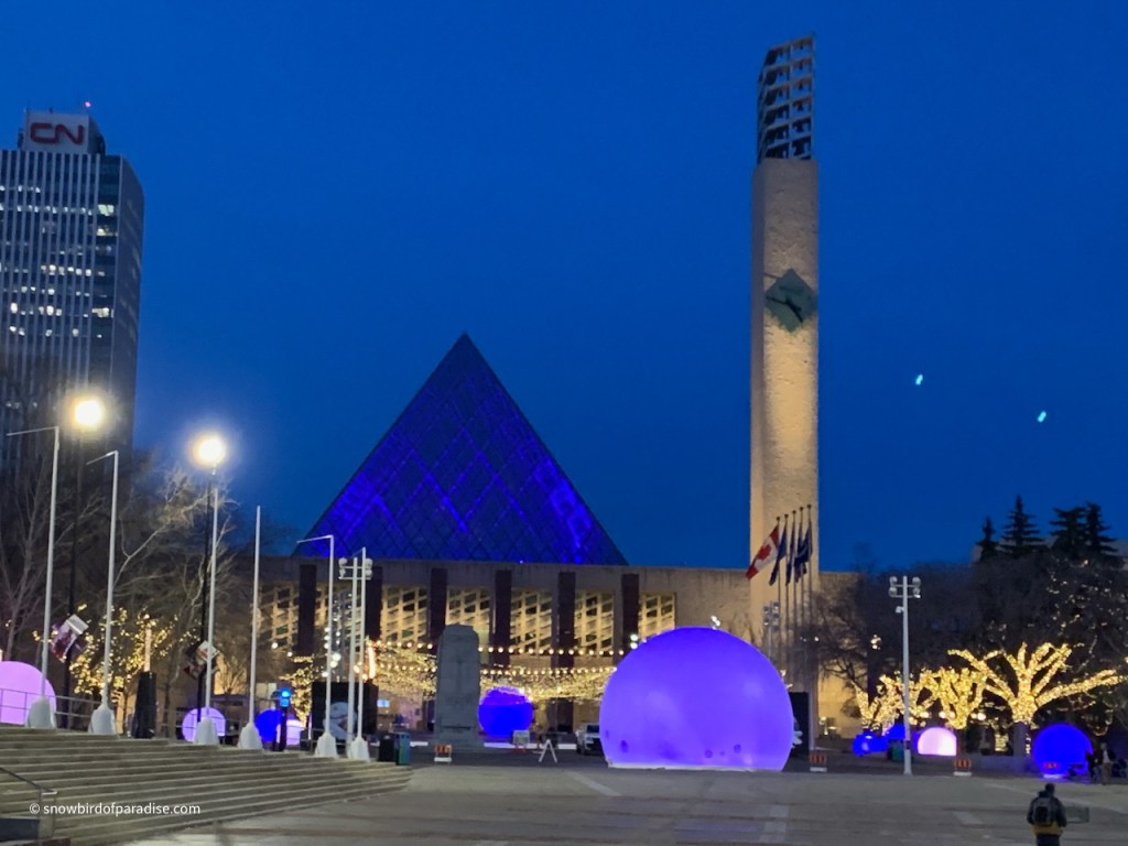 As a follow-up to my previous post, and with thanks to Jeremy Nickaruk for the inspiration, I went back to Sir Winston Churchill Square this evening in order to take these pictures. As you can see, the Moon Garden light show by Lucion is quite lovely.