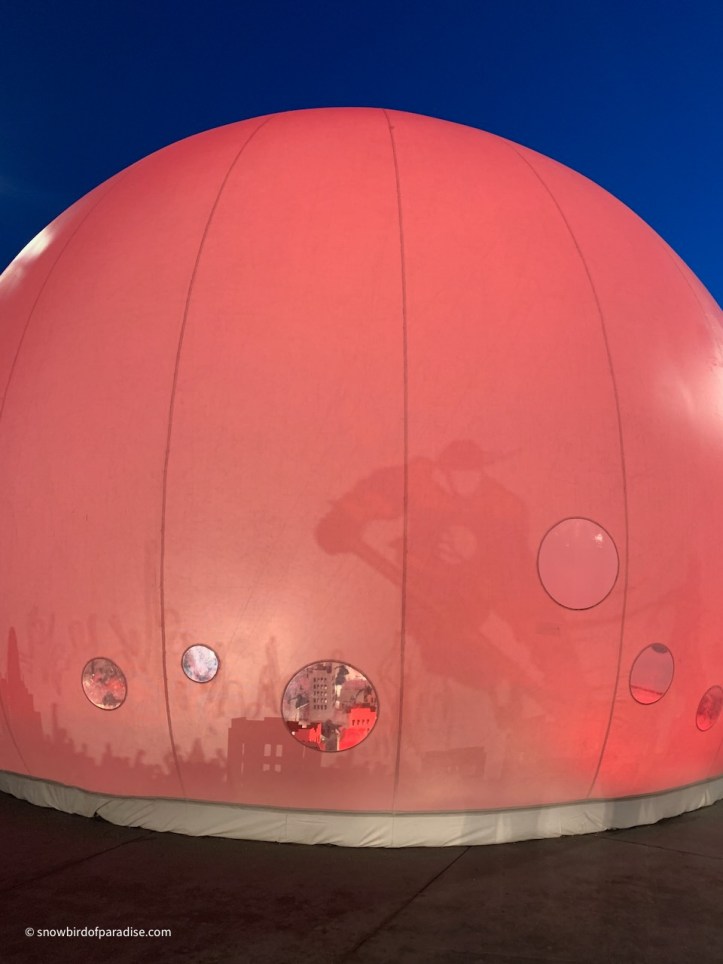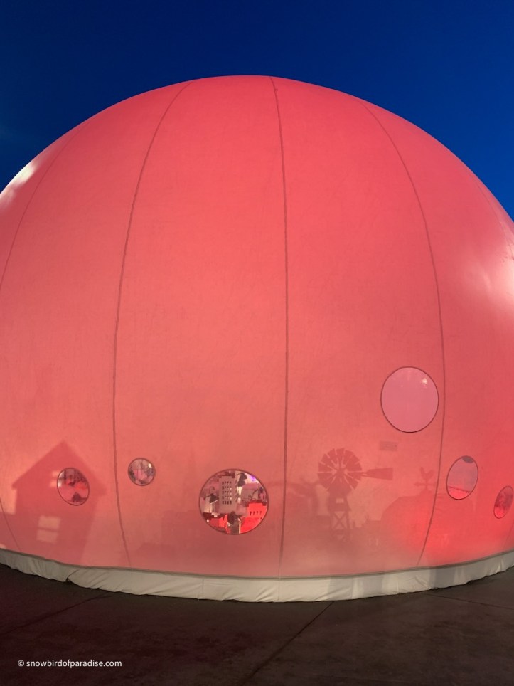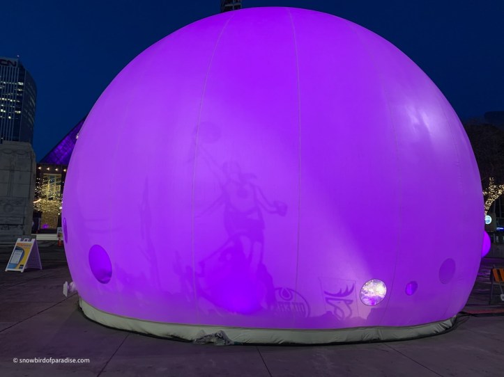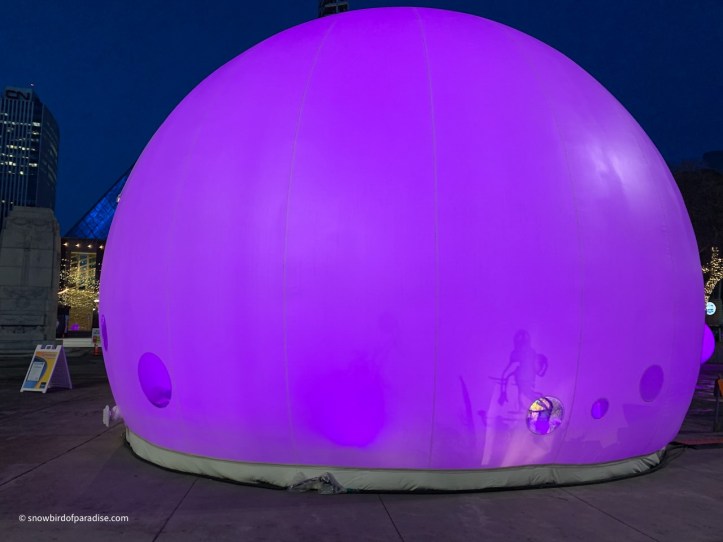 The colours in the domes change every few minutes and I saw them purple, red, and orange.