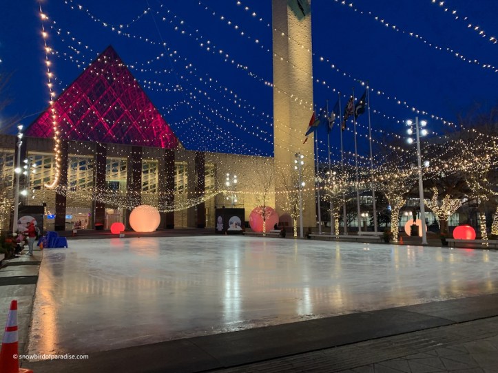 There were no skaters on the outdoor rink when I was there, but perhaps they were all enjoying their evening meal at the Sherlock Holmes Pub. I can confirm that it was full of happy diners.