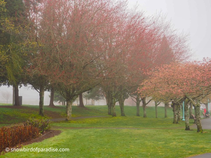 Sunday provided a lovely combination of early spring blossoms and mist as the morning fog began to lift.