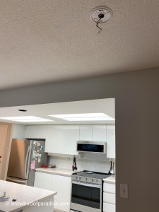 We were visiting them one weekend and my husband was helping to track down the wayward alarm. They’d narrowed it to one area of the kitchen. So there’s the 6’5″ homeowner standing on the counter top testing the the smoke alarm overhead. It beeped it’s own beep, so it wasn’t the one.