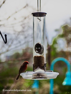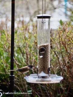 I am aware that there can be downsides to feeding birds, especially if you feed them the equivalent of junk food, so I made a point of going to the local experts at the Backyard Wildbird and Nature Store and asking for the best food for songbirds. The people who work there know a lot about local bird species and the most desirable seeds to feed them, and I am happy to take their advice.