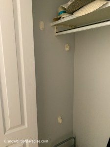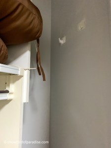 When the areas were smooth enough for me, I gave them two coats of paint. Et Voila! It is as though there were never hooks in odd places.