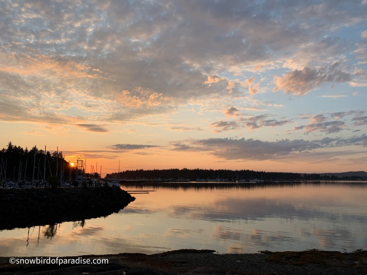 I have various remedies that work sometimes, but not all the time. I use them when I haven’t had a good sleep for several days, but mostly I just let the insomnia keep me awake. This may sound illogical, but not when you realize there are advantages to wakefulness. Primarily, insomnia gives me two or three hours of silence all to myself. I usually read, always play word games, sometimes sketch, occasionally walk along the waterfront and, during these early summer days, I regularly enjoy watching the sunrise.