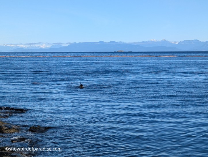 As we rounded the point we first heard then saw lots of seals playing in the water. At times they leaped out but, of course, I couldn’t get a picture of the most impressive jumps. Even so, it was a treat to stand and watch. All in all, it was a great morning. Click on the arrows to see some of my pictures.